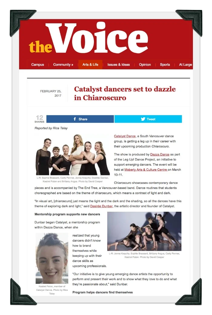 CHIAROSCURO featured new contemporary dance works by Desirée Dunbar, Sophie Brassard and Carly Davis with musical guests The End Tree string duo.